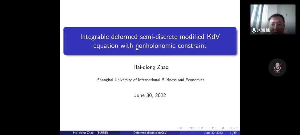 应我院邀请,6月30日上午,上海对外经贸大学赵海琼教授在腾讯会议作了题为《离散可积系统》的报告。相关师生聆听了此次报告,报告由樊方成老师主持。