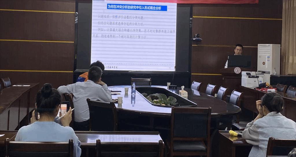 应我院邀请,4月24日下午,河南理工大学智慧来副教授在砺志楼114作了题为《基于形式概念分析的冲突分析》的报告。相关师生聆听了此次报告,报告由孙文老师主持。