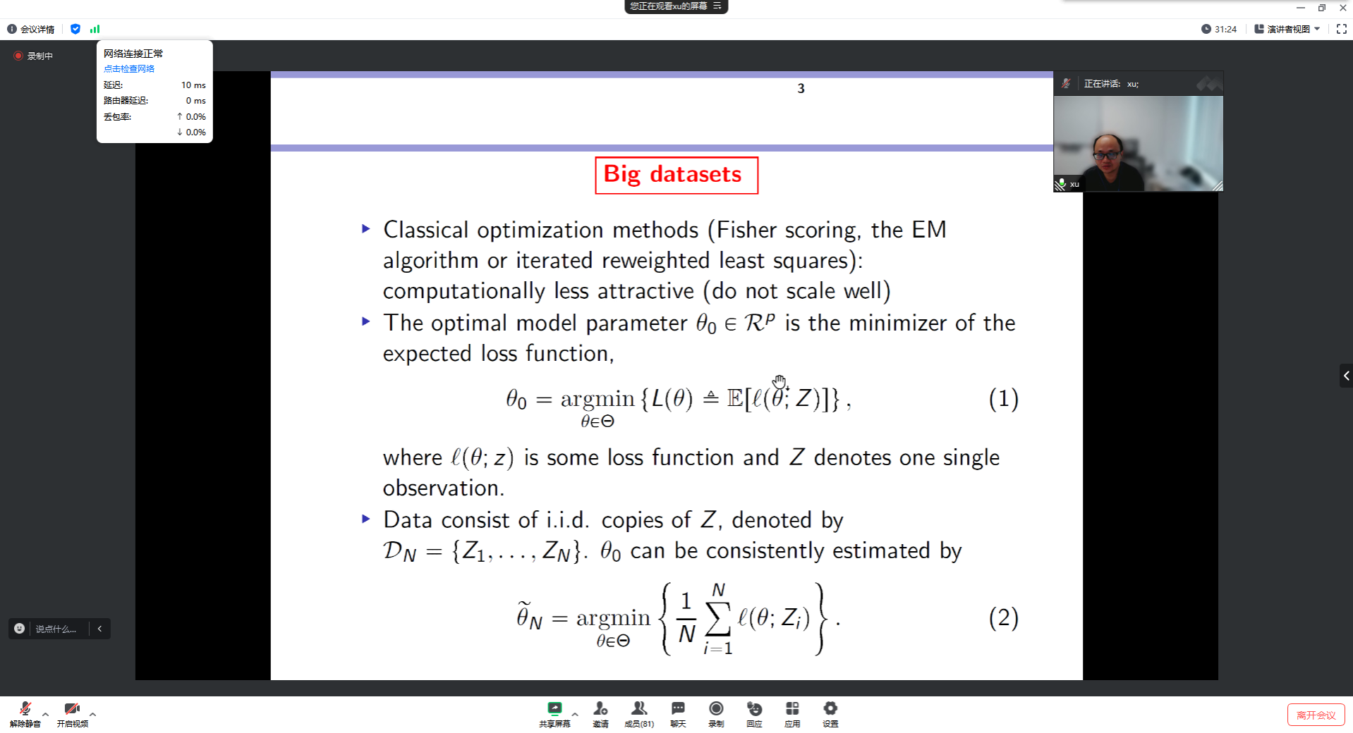 报告中指出,低秩矩阵补全在实际应用中是有效的,但现有的方法使用平方损失的两两差异可能导致低于标准的预测。为了解决这个问题,徐锦峰教授提出了一个灵活的优化框架,以容纳不同的成对惩罚函数。开发了一个具有理论收敛性保证的有效算法,并建立了具有潜在变量子群的场景的统计保证。通过分析表明,这个方法,包括复杂性正则化最大似然估计,优于标准矩阵补全方法。大量的实验验证了该方法在合成和真实数据集上的优越性能。报告结束后,在座的师生就相关研究问题进行了探讨和交流。