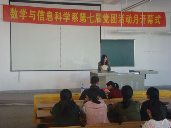 12月15日上午,数学与信息科学系第七届党团活动月开幕式在砺志楼120顺利召开。出席开幕式的有党总支秘书林晓老师、10级辅导员郑建平老师。
