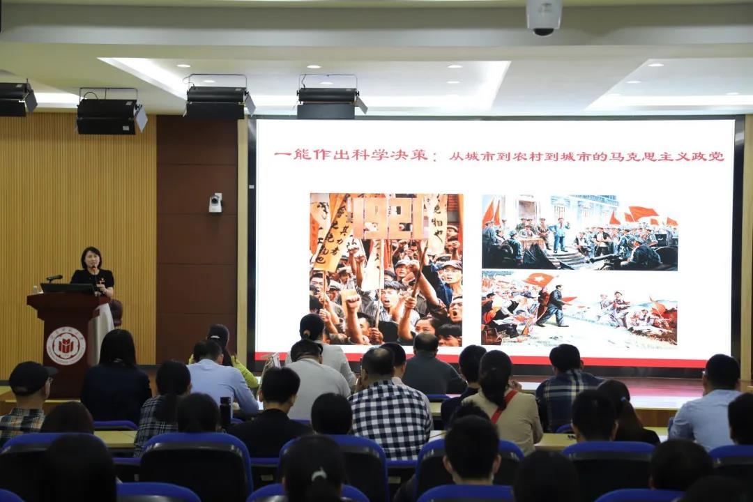 报告中,鄢姿副教授围绕“能作出科学决策”、“能发扬斗争精神”、“能坚持人民立场”、“能团结爱国力量”、“能勇于自我革命”等五个方面讲述了中国共产党为什么“能”,展现中国共产党从建立到壮大、不断推进马克思主义中国化的过程,带领我院党员重温了党的革命历史。报告主题鲜明、重点突出、内涵丰富、条理清晰,具有很强的针对性和指导性。