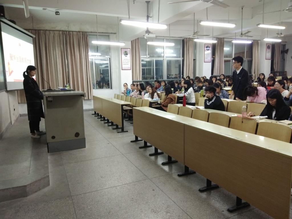 414日晚上,院学生第四党支部书记蒋晓莉在砺志131为我院入党积极分子开展了以《全国全省教育大会精神解读》为主题的专题党课。