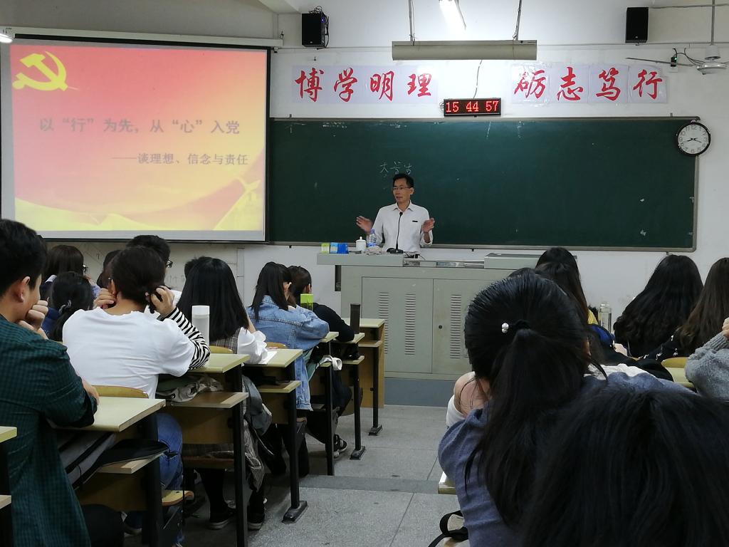 411日下午,我院院长林梦雷在砺志楼130为我院入党积极分子开展了以“以行为先,从‘心’入党----谈理想、信念与责任”为主题的专题党课。