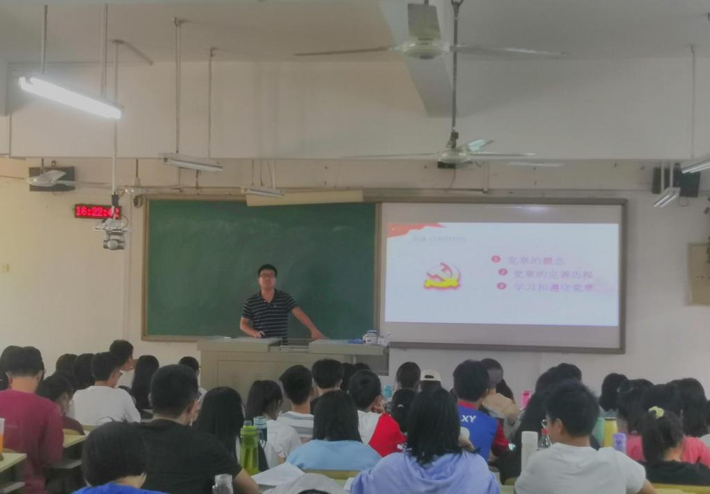 10月25日下午,在砺志225,我院学生第二党支部书记陈灿滨为分党校学员讲授“学习党章、践行党章”为主题的专题党课。