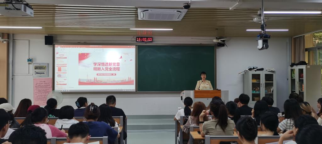 10月21日下午,我院党委组织员方婷老师于砺志楼224教室为院分党校第二十五期入党积极分子上题为《学深悟透新党章 明晰入党全流程》的主题党课。