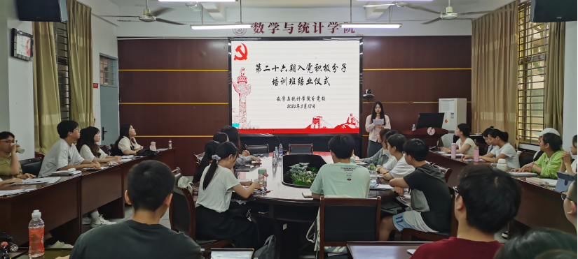 5月12日下午,我院分党校第二十六期入党积极分子培训班结业仪式在砺志楼114教室如期举行。院党委副书记胡海智老师、本期入党积极分子培训班领队黄艺佳老师及全体参训学员参加此次结业仪式。