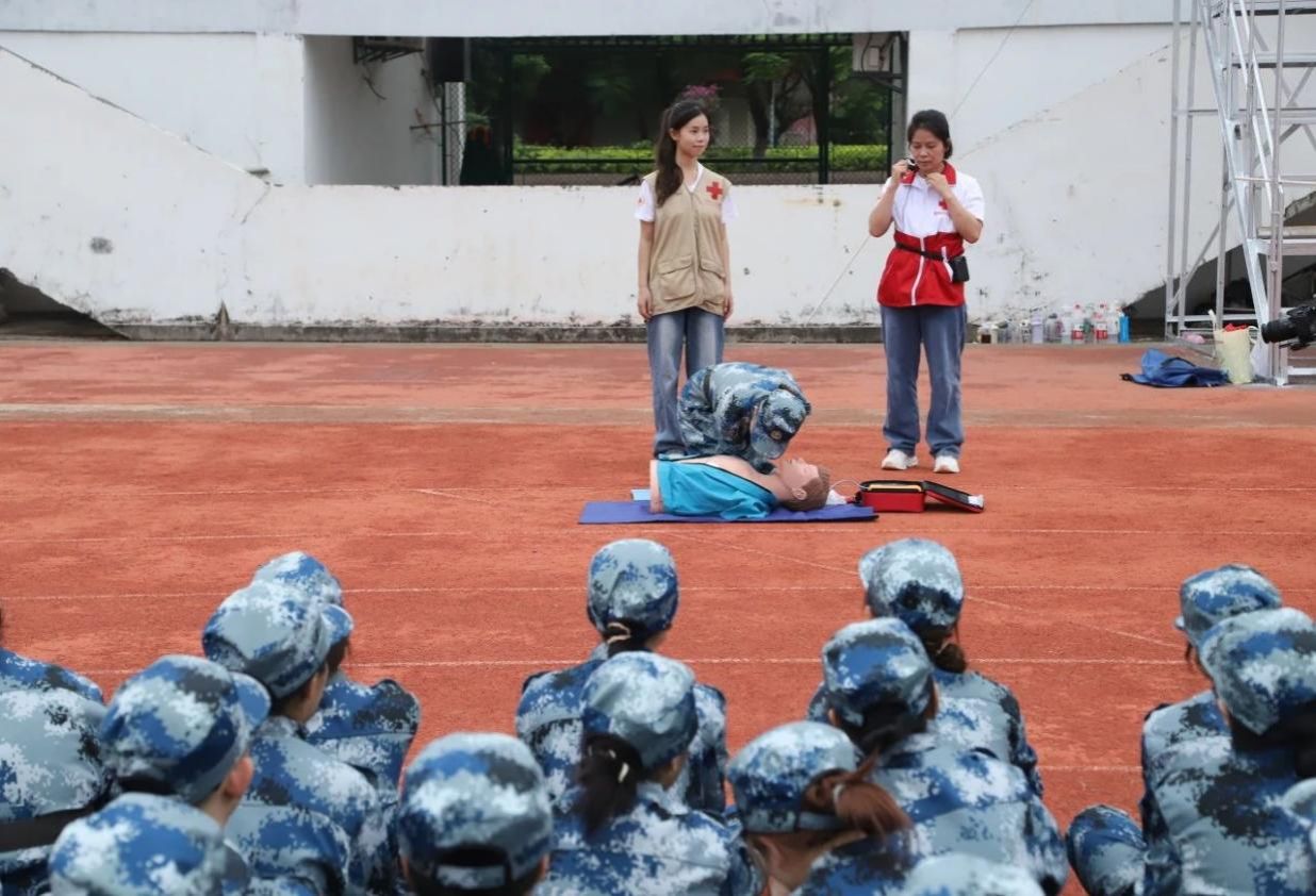 立身以立国,授技更授志。为了强化同学们的应急救护本领,校红十字会匠心独运,采用讲解与实操并重的模式,悉心传授心肺复苏术及AED急救设备的运用之道,并热情邀请同学们参与演练实践。“白金十分钟,黄金一小时”,此乃抢救生命的宝贵时机。同学们侧耳倾听讲解,凝目观察演示,他们认真学习的身影背后,不仅承载着对医护技能的尊崇,更传递着责任与担当的薪火。
