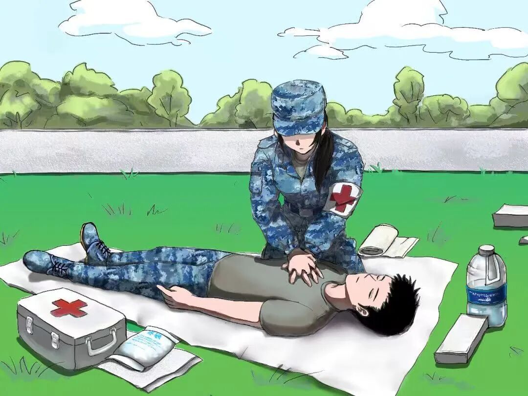 在军训的绿茵场上,白色的急救垫承托着青春的坚毅。当阳光把迷彩镀上汗水的光泽,那枚臂章上的红十字与白色药箱,成了训练场最温暖的注脚。