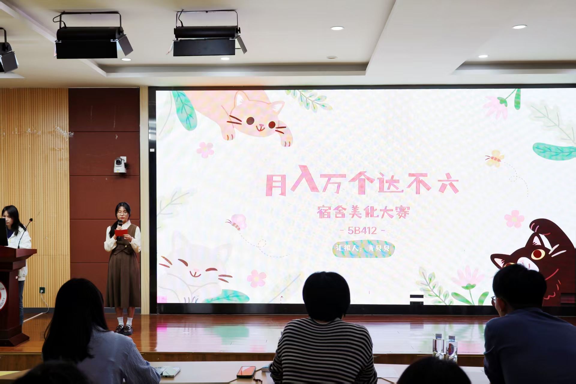 各参赛宿舍展示完毕后,我院22级辅导员暨自律会指导老师石伟琦老师对本次活动进行点评,呼吁同学们共同塑造兼具文化底蕴与绿色生机的文明和谐宿舍。