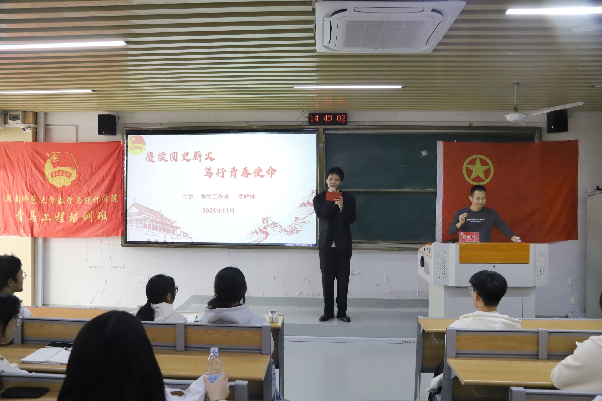 讲座尾声,罗老师以“团史是最好的教科书,青春是最美的奋斗章”与学员共勉,并发出“三个一”实践倡议:精读一遍团章核心要义、分享一段触动心灵的团史故事、参与一次践行团员使命的志愿服务。他鼓励全体青马学员将团史学习的思想收获转化为脚踏实地的行动,在知行合一中成长为有理想、敢担当、能吃苦、肯奋斗的新时代合格团员,让青春在奉献中绽放光彩。