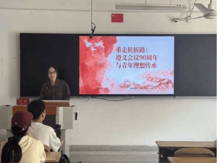 研究生辅导员王荇首先对遵义会议进行深入剖析,清晰阐释了会议在革命危机关头挽救党和革命的核心价值,让学员们深刻铭记其中蕴含的历史经验与教训。接着,她聚焦红色精神内核,结合革命先辈事迹解读精神实质,生动阐释其在当代的实践意义,引导学员们将红色精神融入学习工作,以坚定信念应对挑战、以创新思维破解难题。最后,她明确以多元举措推动红色基因代代相传,激励学员们走好新时代“长征路”。