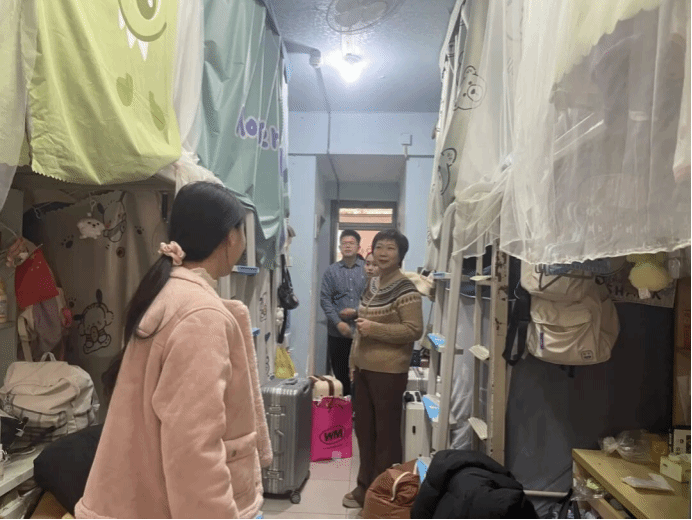 学院领导一行还深入学生宿舍,细致查看门窗、水电及消防设备现状,亲切询问学生返校情况与生活需求,叮嘱注意用电安全、保持宿舍整洁。陈晶莹书记强调,宿舍检查是开学工作的重要环节,要求辅导员秉持学生至上原则,强化责任担当,抓实抓细各项工作,全力打造温馨安全、让学生安心、家长宽心的住宿环境,助力同学们以饱满状态投入新学期的学习生活。
