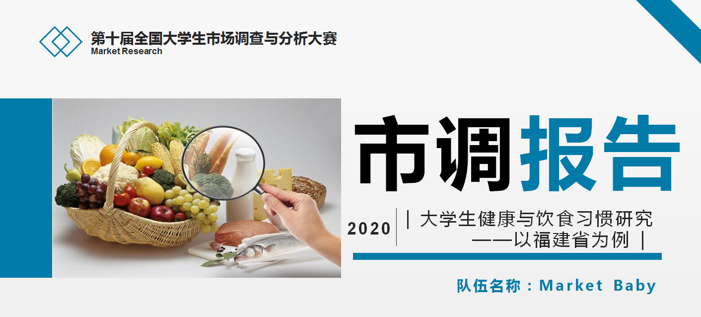 其中,由学院2017级统计班许莹莹、叶聿倾、黄双双、李航欣和王玉珑组成的Market Baby队,将理论知识结合实践,通过文献调研、问卷调查,运用统计学、营养学、数据挖掘等分析方法,分析福建省大学生在校期间饮食的影响因素并建立大学生饮食习惯评估体系。最终,作品《大学生健康与饮食习惯研究——以福建省为例》取得国家二等奖的佳绩。