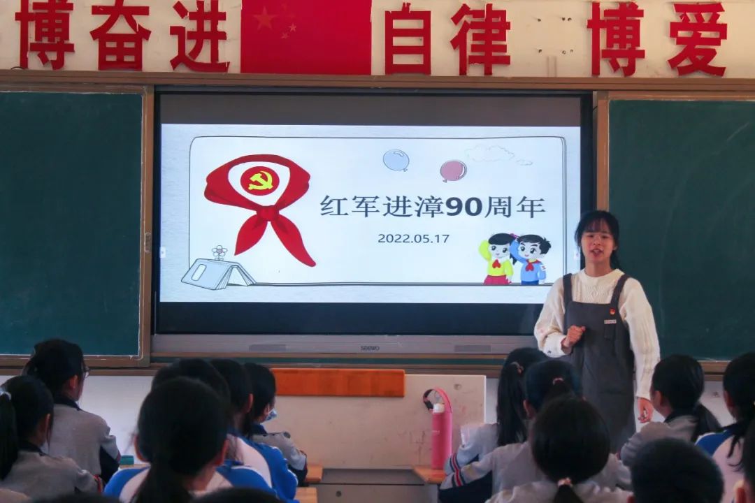 随后,学院学生第一党支部党员代表为云霄二中学生上了一堂《红军进漳90周年》党课,讲述了毛主席率领中国工农红军东路军攻克漳州的历史,并观看《红军攻克漳州》微电影,通过生动详实的影像资料深入了解了90年前那段惊心动魄的烽火岁月,深刻感受了革命先辈们的英勇无畏,领会红色文化的思想内涵与时代价值,传承红色基因,赓续红色血脉。