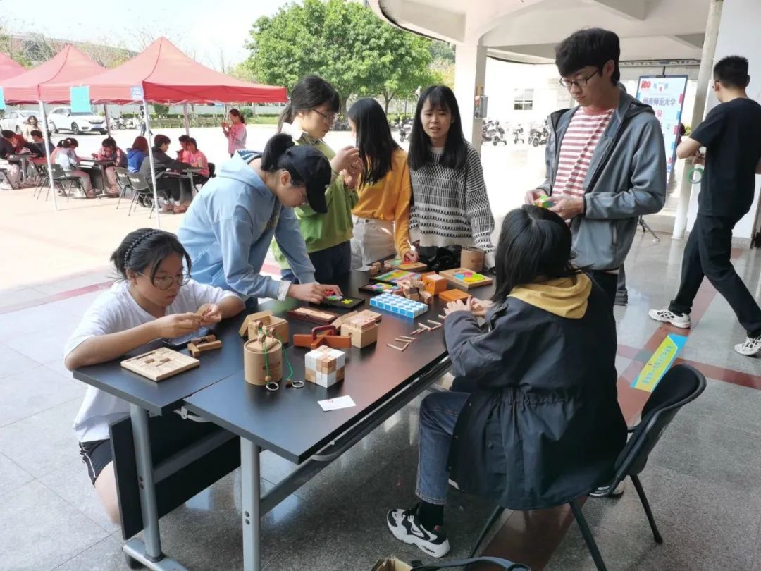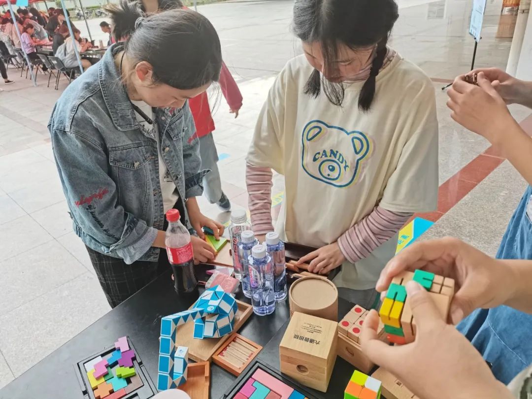 益智教具服务队将于每周六下午16:00-18:00在砺志楼108空地进行益智教具展览。每一个益智教具都有属于自己的故事,其中涵盖的数学知识也多种多样,这就需要有强烈的探究精神的同学不断钻研,找出不同的解法,发现不同的数学知识在益智教具中的应用。值此契机,服务队成员向同学们深入讲解数学益智教具的玩法和方式,与同学们共同探讨其中所蕴含的数学知识以及背后的数学历史,不断的深挖和探讨,让更多的同学获得多方面的提升。