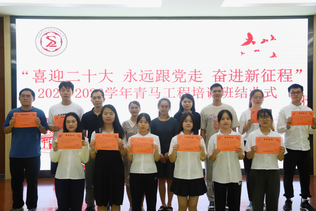 6月16日,ok138cn太阳集团在砺志楼120举办“喜迎二十大 永远跟党走 奋进新征程”2021-2022学年团校培训暨青马工程培训班结业式。学院党委副书记林晓老师、团委书记罗晓林老师、18级辅导员李伟俊老师、研究生辅导员郑珊老师和21级辅导员李巍婷老师出席活动。