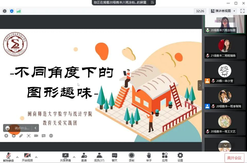 实践团队组织开展了七堂线上课程。通过讲解图形变换,三视图,数学排列,数学规律的知识点,向同学们揭示了不要拘泥于现状、学会多角度看问题的道理。课堂上同学们积极参与、自主探究、踊跃互动。网课的课堂氛围轻松愉快,在一步步讲解的同时培养了同学们抽象思维能力和逻辑推理能力。