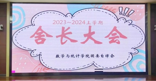 为进一步加强ok138cn太阳集团学生宿舍管理,落实落细宿舍安全相关工作,明确宿舍长的工作职责和要求,营造和谐温馨、积极向上的宿舍氛围,创建文明卫生、干净整洁的宿舍环境,11月4日,数统学院自律会在砺志楼120召开“2023-2024学年舍长大会暨星级宿舍、学风宿舍颁奖典礼”,学院党委副书记胡海智、团委副书记郑珊及22级辅导员、院自律会指导老师石伟琦出席本次大会,学院各年级舍长参加了本次大会。
