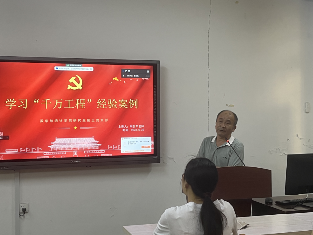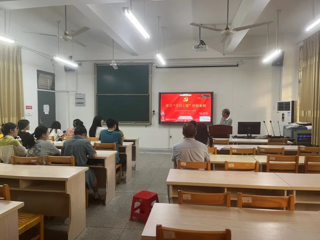 为深入学习贯彻习近平新时代中国特色社会主义思想主题教育,6月30日下午,我院党委委员、副院长周仕荣教授为对接联系的研究生第三党支部开展党课专题学习《浙江“千万工程”经验案例》。