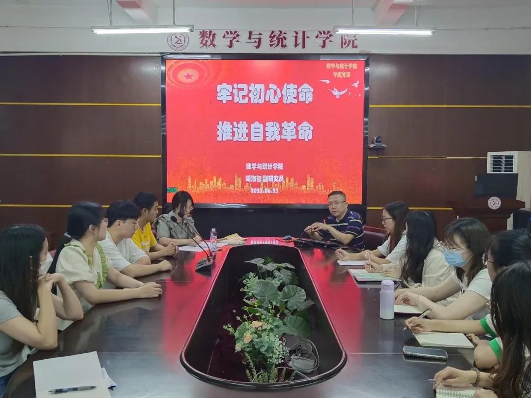 为深入学习贯彻习近平新时代中国特色社会主义思想主题教育,牢牢把握“学思想、强党性、重实践、建新功”的总要求,6月23日上午,我院党委副书记胡海智于砺志楼114为对接联系的学生第四党支部上题为《牢记初心使命 推进自我革命》的专题党课。