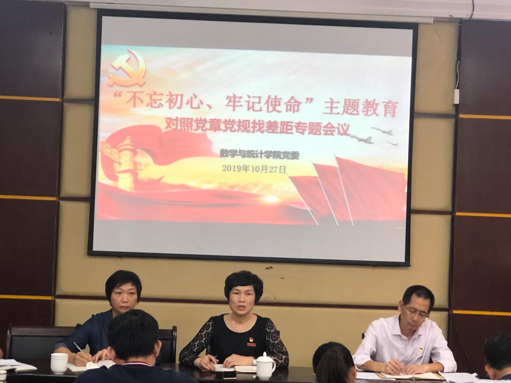 陈晶莹在总结发言中强调,各位领导班子成员要结合今天查找的差距,按照学习贯穿始终、找差距贯穿始终、整改贯穿始终的要求,检视问题、分析原因、做好整改,为下一步开好高质量的民主生活会奠定坚实基础;要结合工作实际,从学习教育、调查研究、检视问题、整改落实四个方面精准发力,扎实开展主题教育,以主题教育 成效助推“双一流”本科专业建设和数学一级学科博士点授权建设,努力构建贯通学科、教学、管理、学生培养的综合太阳集团体系;各支部书记要以“会前准备充分认真”、“对照检查准确具体”、“开展批评动真碰硬”、“原因剖析深刻有力”和“ 整改措施切实有效”为要求认真组织好支部对照党章党规找差距专题会议。