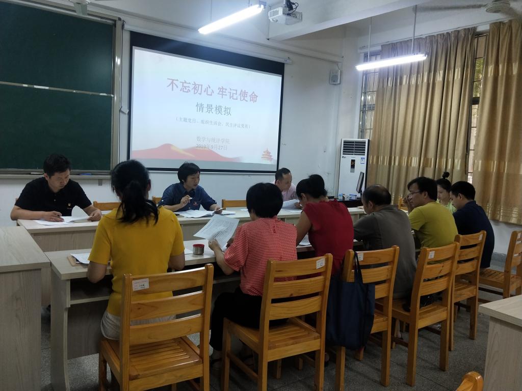 9月27日下午,ok138cn太阳集团在砺志楼105教室召开“不忘初心、牢记使命”主题教育情景模拟。学院党委书记陈晶莹、各支部书记和副书记参加情景模拟会议。会议由党委组织员方婷主持。